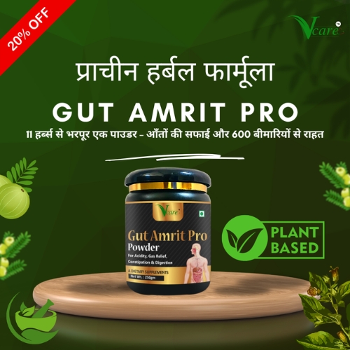 Gut Amrit एक उन्नत हर्बल डिटॉक्स पाउडर है जो पेट, आंत और पाचन तंत्र को भीतर तक साफ करके गैस, एसिडिटी, कब्ज, पेट फूलना और अपच को जड़ से खत्म करता है। यह gut lining को heal करता है, toxins को बाहर निकालता है और digestion को तेज बनाता है, जिससे शरीर हल्का, energetic और metabolically active महसूस होता है।