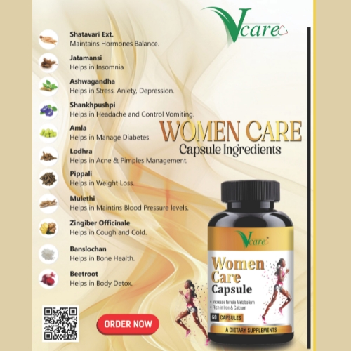 Women Care एक प्रीमियम हर्बल फ़ॉर्मूला है जो महिलाओं के hormones को naturally balance करके PCOD, PCOS, irregular periods, weakness, stress और mood swings में मजबूत समर्थन देता है। यह uterus & ovary को nourish करता है, energy बढ़ाता है और overall female wellness को restore करता है, ताकि महिलाएँ रोज़ बेहतर महसूस करें।